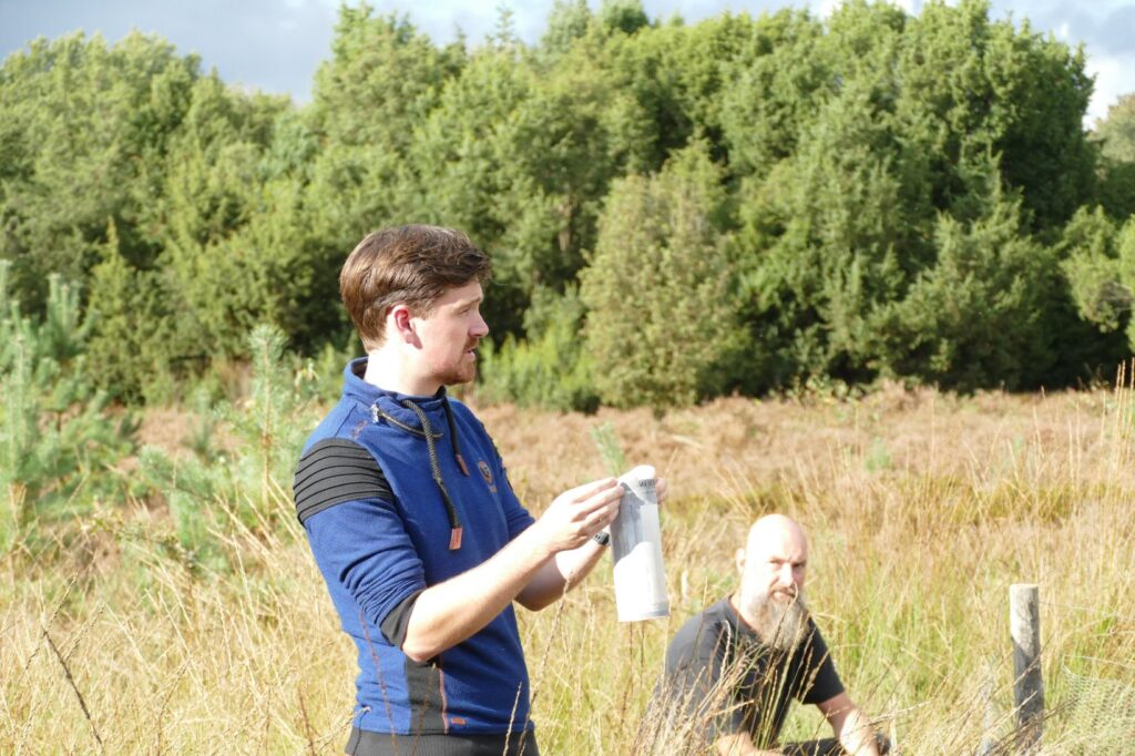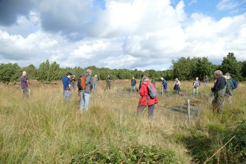 Onderzoekers Chris Smit en Rik Veldhuizen van de RUG gaven 6 oktober voor ruim 20 geïnteresseerden een toelichting op het onderzoek naar verjonging van jeneverbes en de invloed van stikstof daarop.