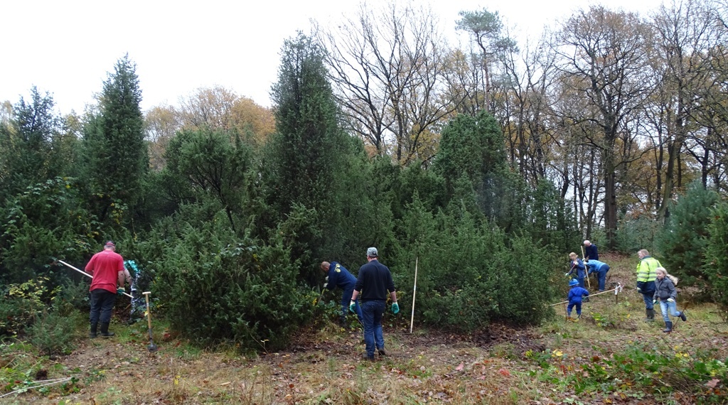 In Drenthe doet het Jeneverbesgilde jaarlijks met enkele terreinen mee, juist om de jeneverbessen vrij te stellen. Dit jaar werd er gewerkt op de Reijntjesveld nabij Orvelte. En op camping de Berenkuil nabij Grolloo deed jong en oud mee om de jeneverbessen een goede toekomst te bieden.