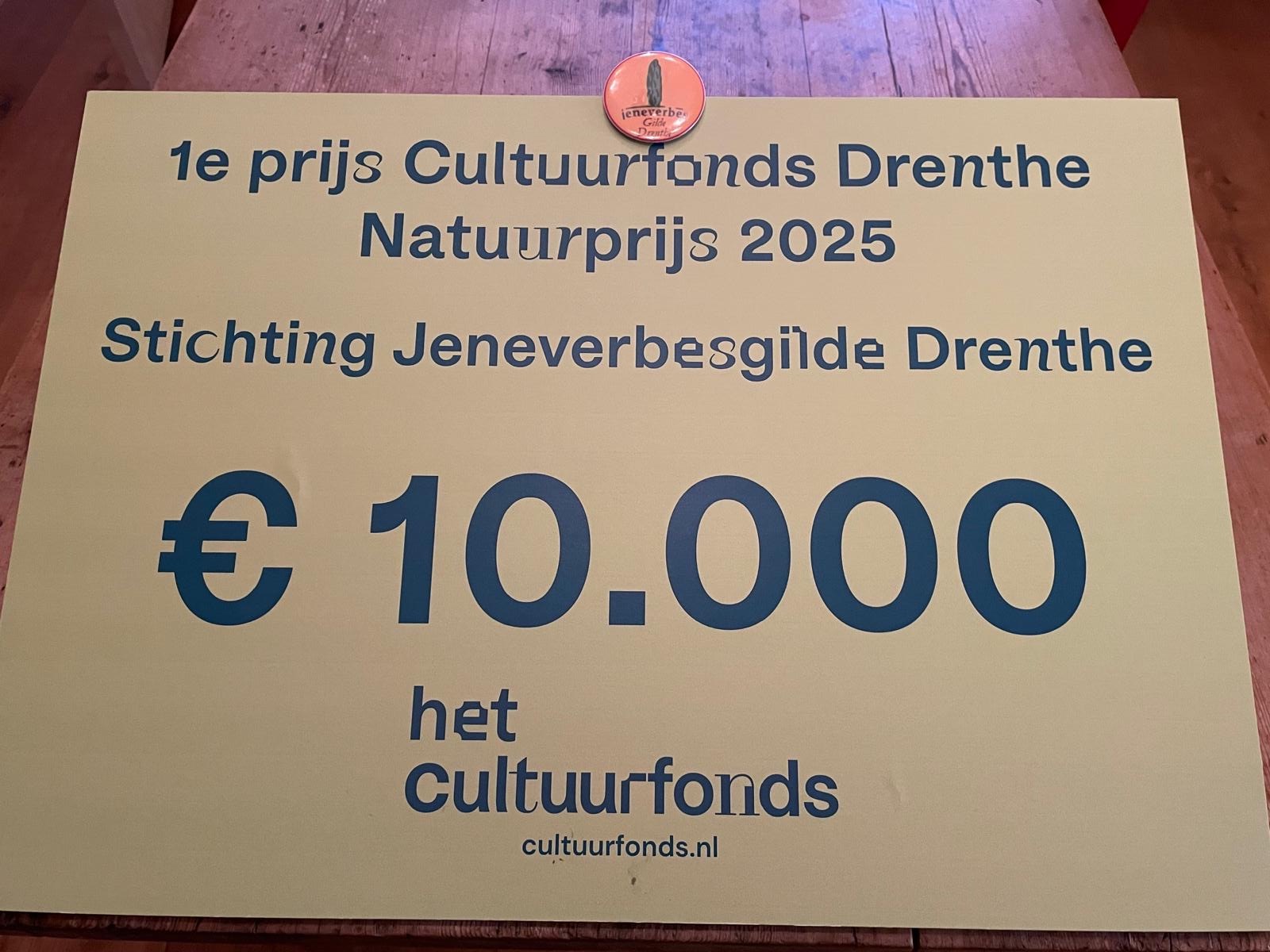 Het Jeneverbesgilde Drenthe heeft de Natuurprijs 2025 van het Cultuurfonds Drenthe gewonnen. Aan de prijs is een bedrag van 10.000 euro verbonden. Met dat geld wil het Gilde onder andere meer jongeren betrekken bij het werken in de natuur ten behoeve van de jeneverbes.
