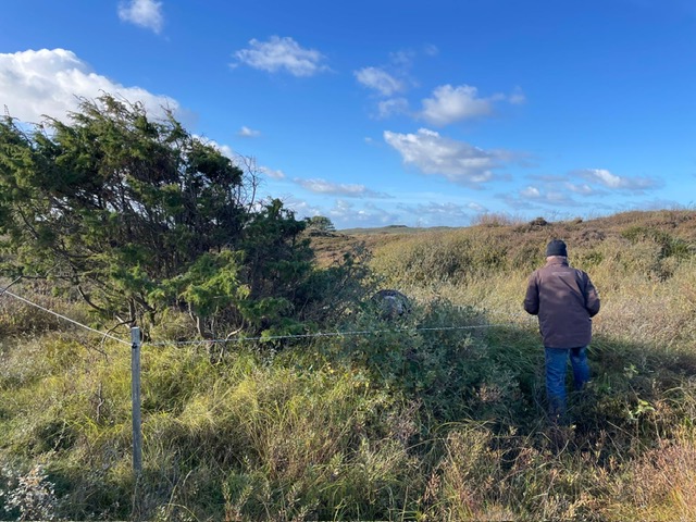 Manfred gaat al jaren naar Terschelling en wilde weten hoe het mogelijk is dat er daar jeneverbessen voorkomen. Ook Pieter Posthumus, voorzitter van het Jeneverbesgilde Drenthe, was daar wel benieuwd naar. Pieter nam contact op met de boswachter. En op zijn beurt was boswachter Lamer wel benieuwd naar de wijze waarop wij in Drenthe met jeneverbessen omgaan.